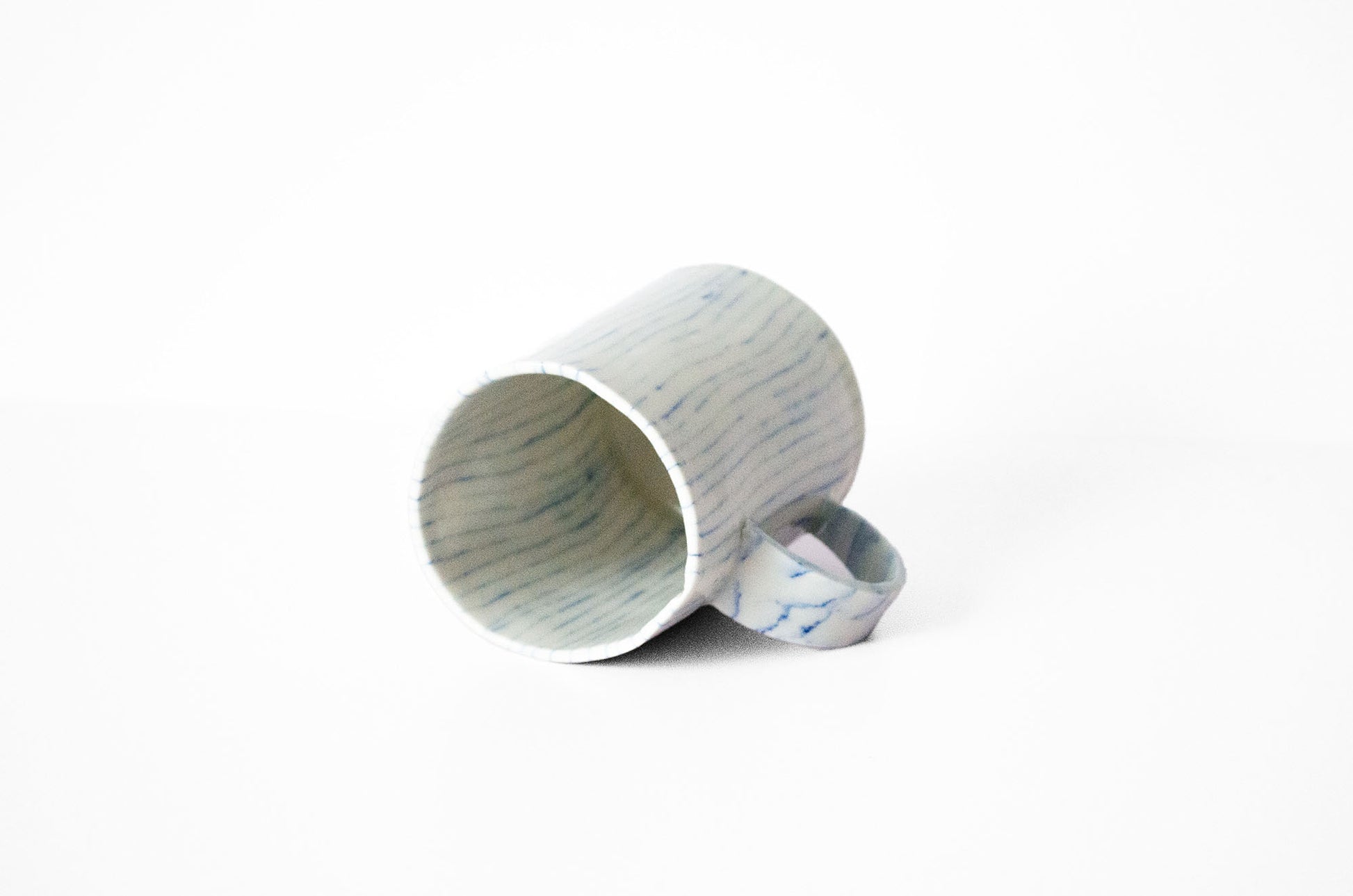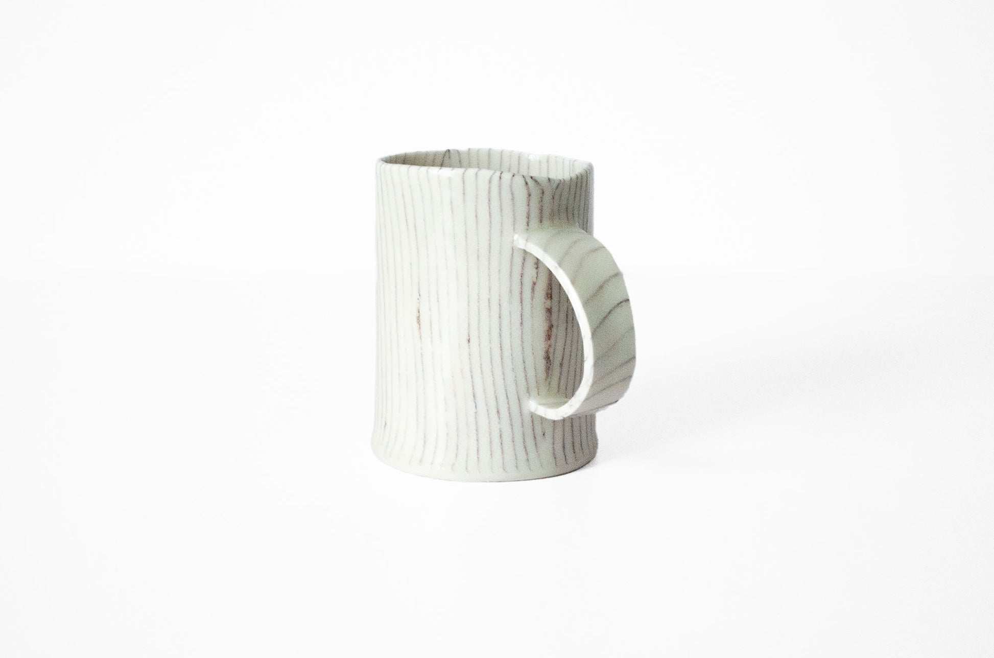 It was created by the steady work of layering thinly stretched porcelain clay slab and colors to create a delicate striped pattern. Designed to look like a stump turned into a porcelain mug, the very natural look will make your tea and coffee time more relaxing.