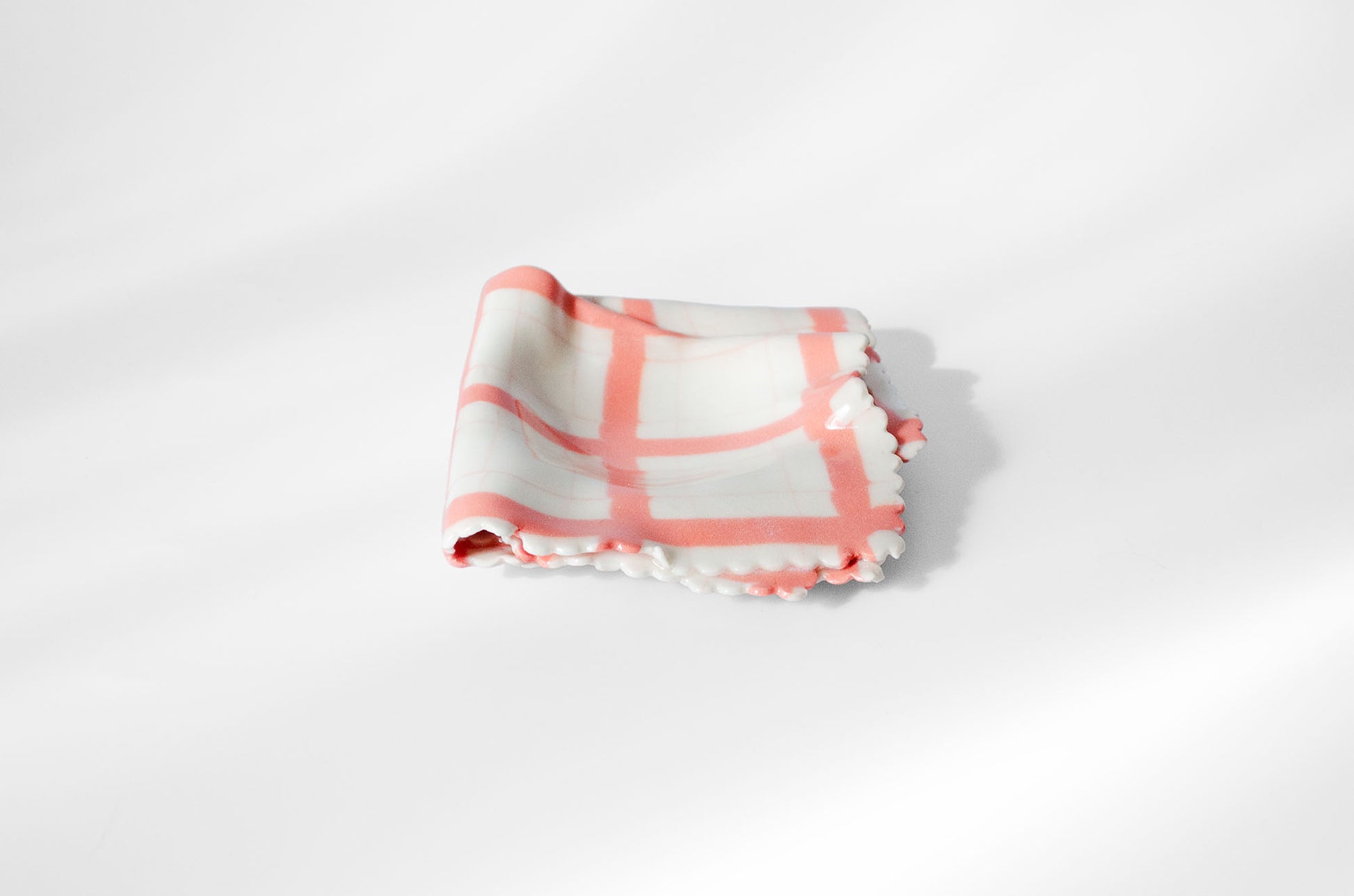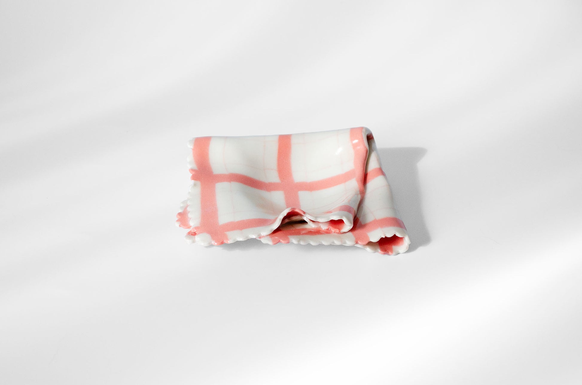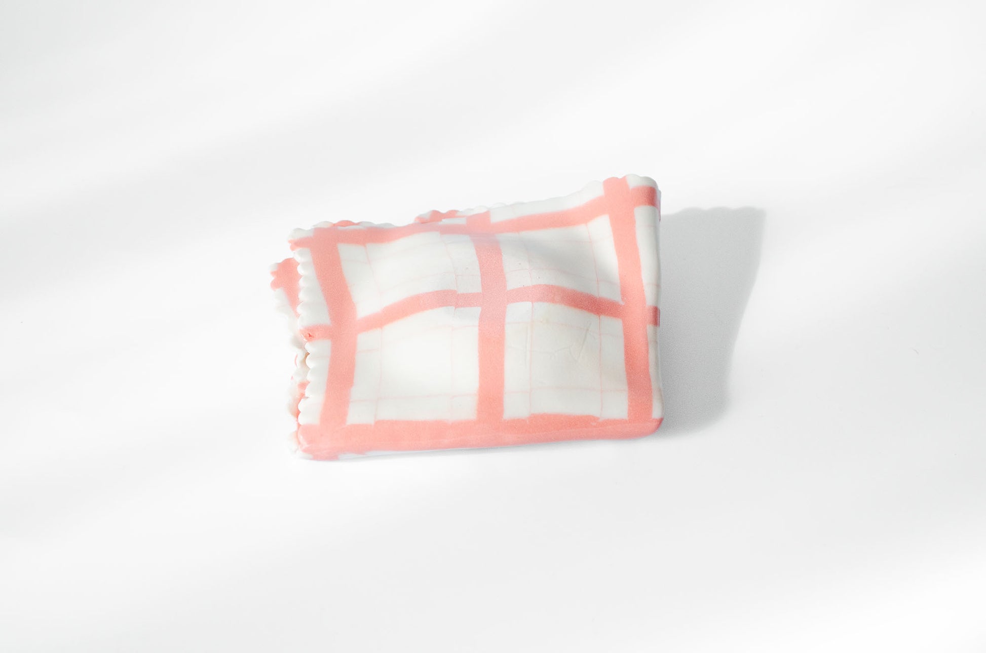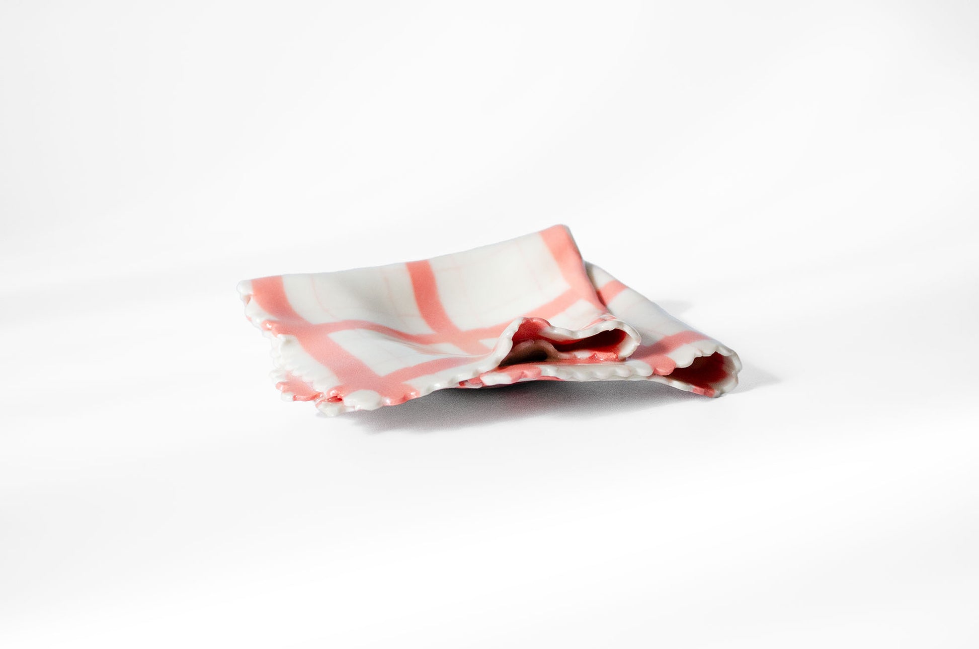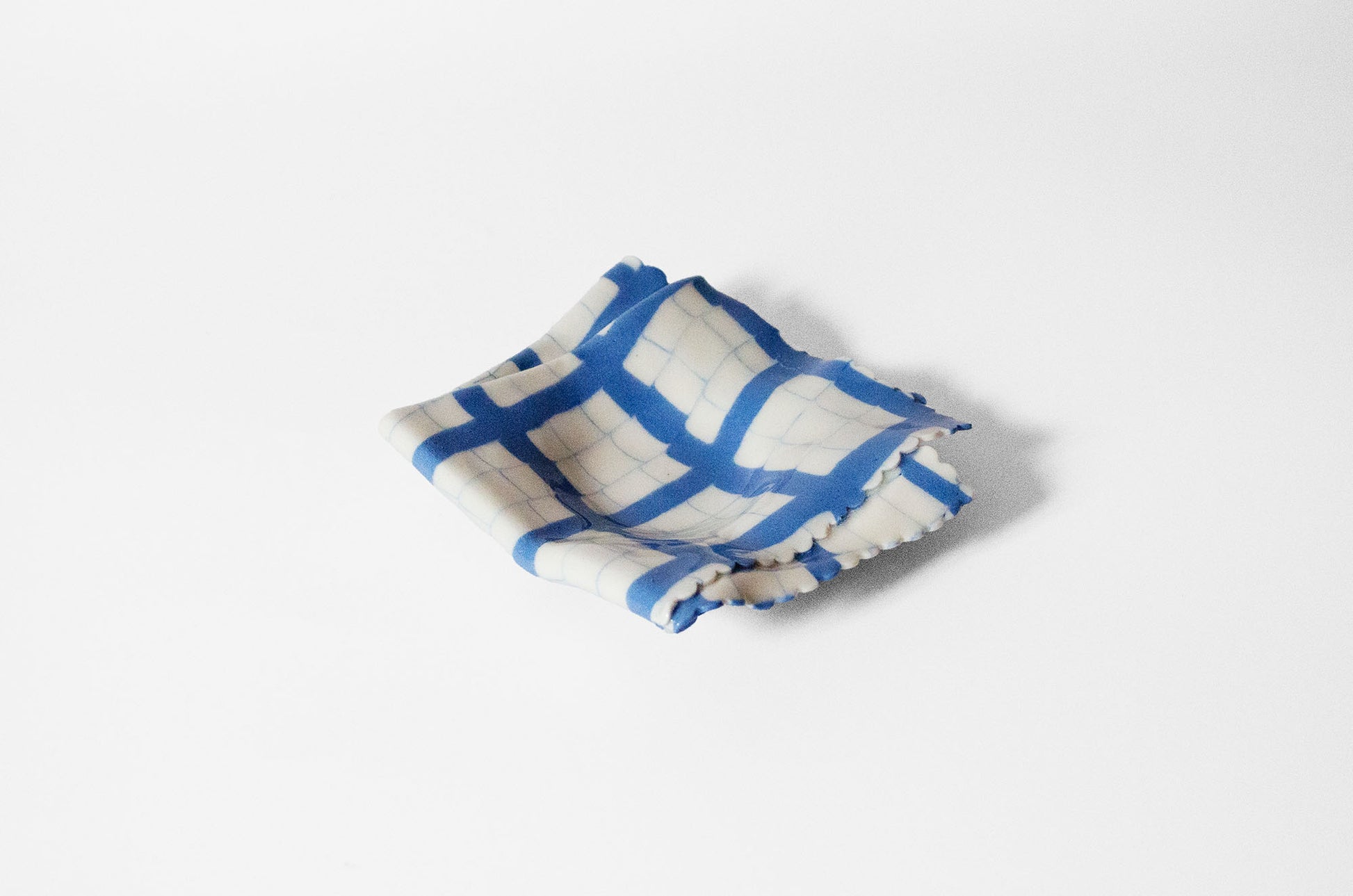 Crafted using the Nerikomi technique, sheets of porcelain clay with a reversible check pattern are cut and carefully folded to create this piece. It combines a poetic contemporary art vibe with practicality as a dish.