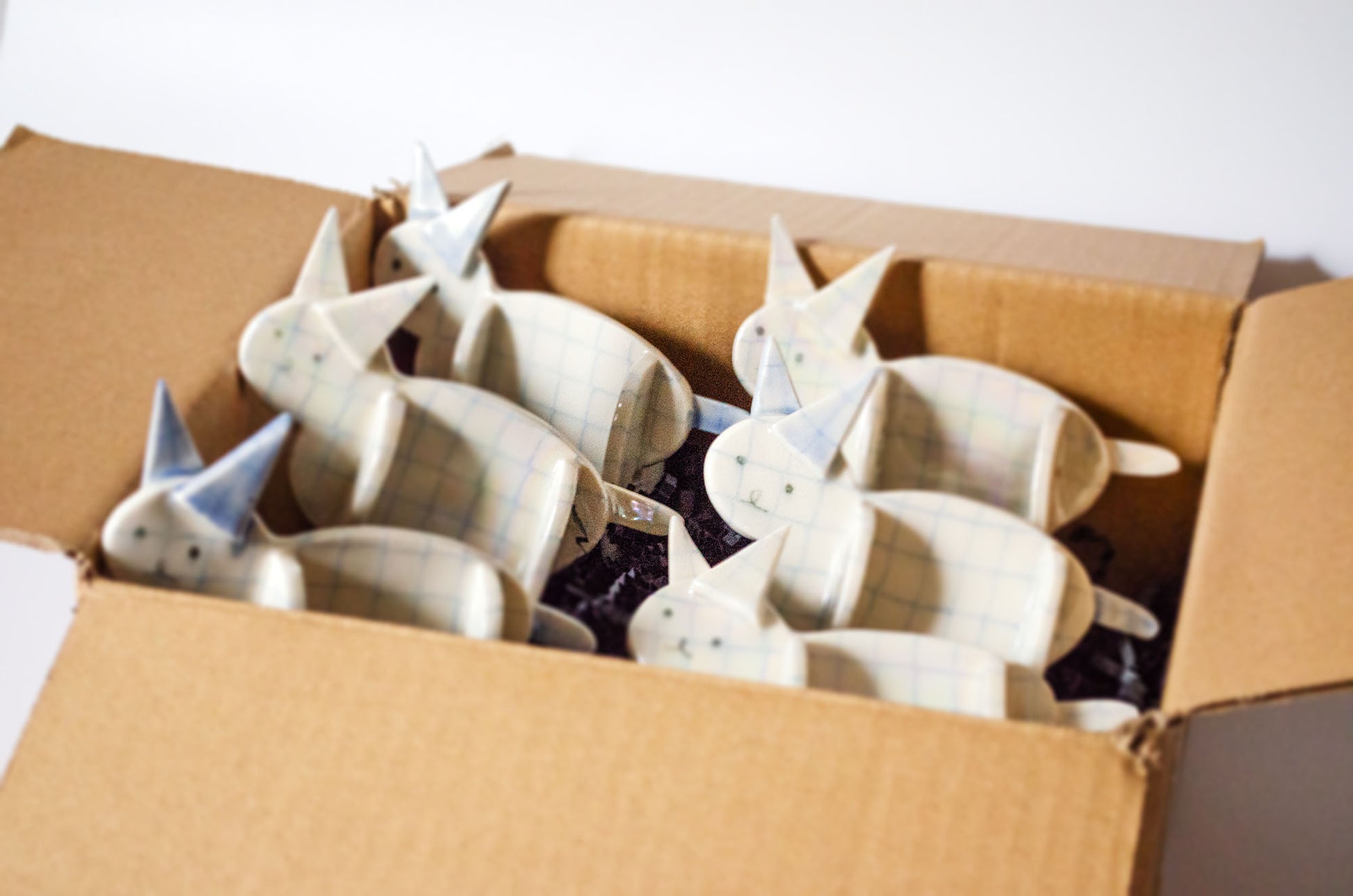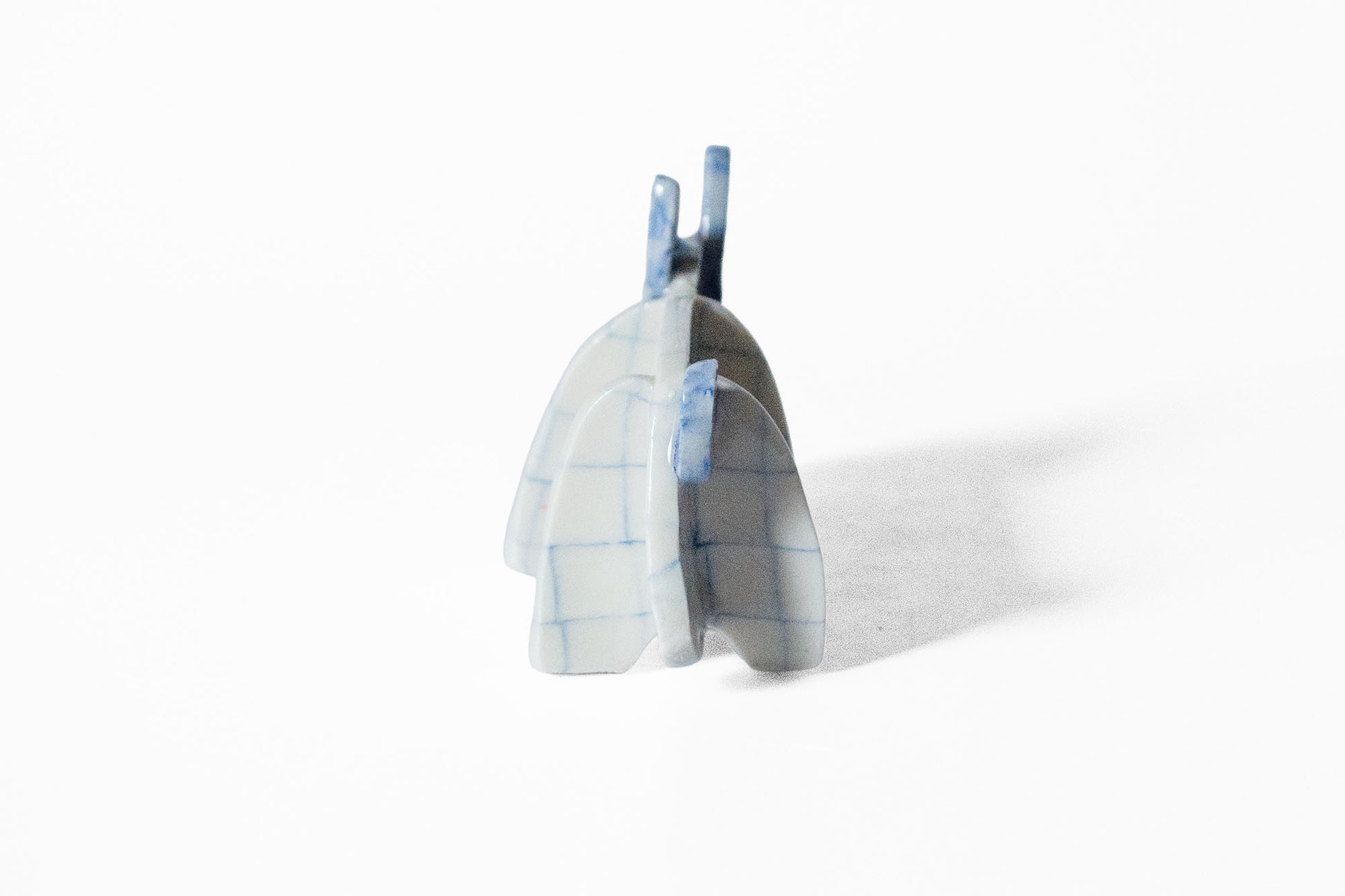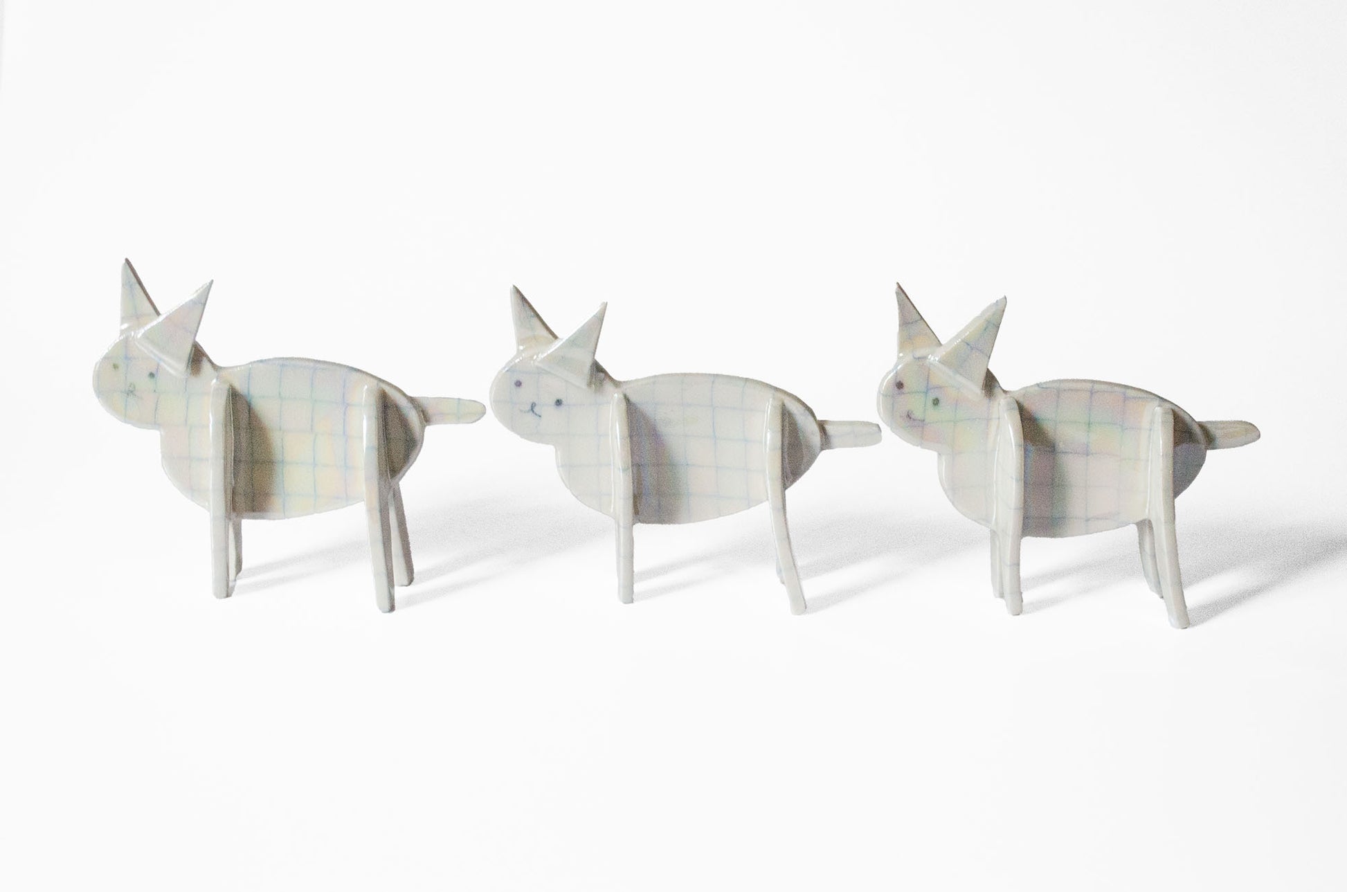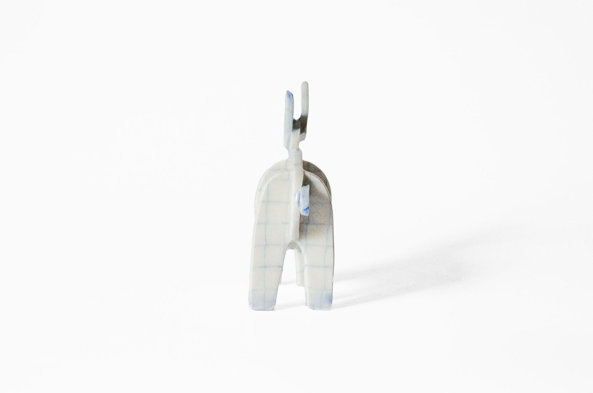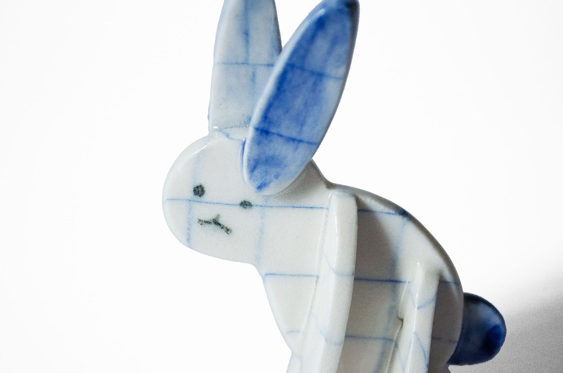 The blue grid pattern, created using the nerikomi technique, evokes the look of traditional porcelain while turning them into animal figures unlike any you’ve seen before.