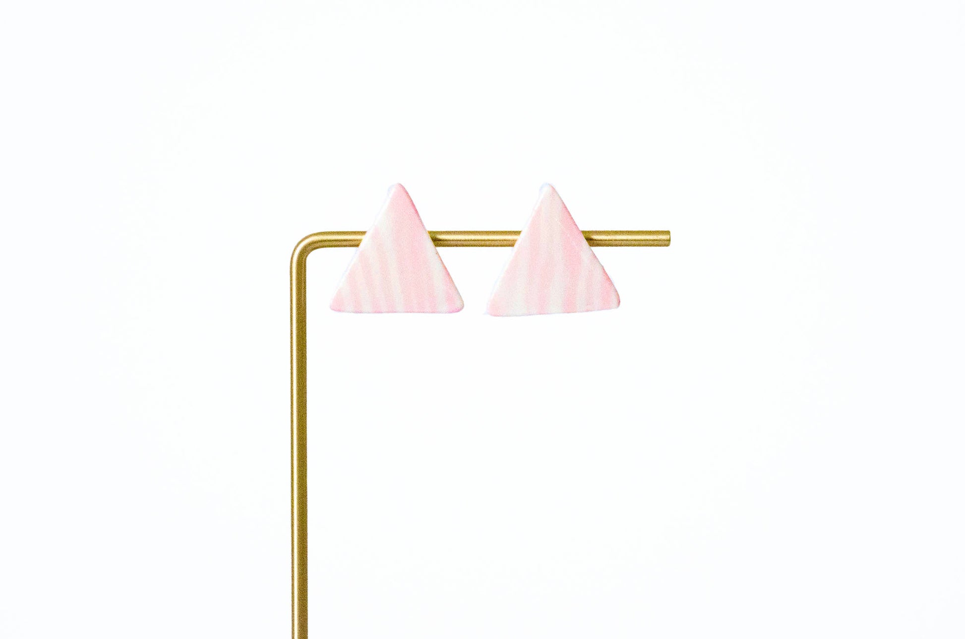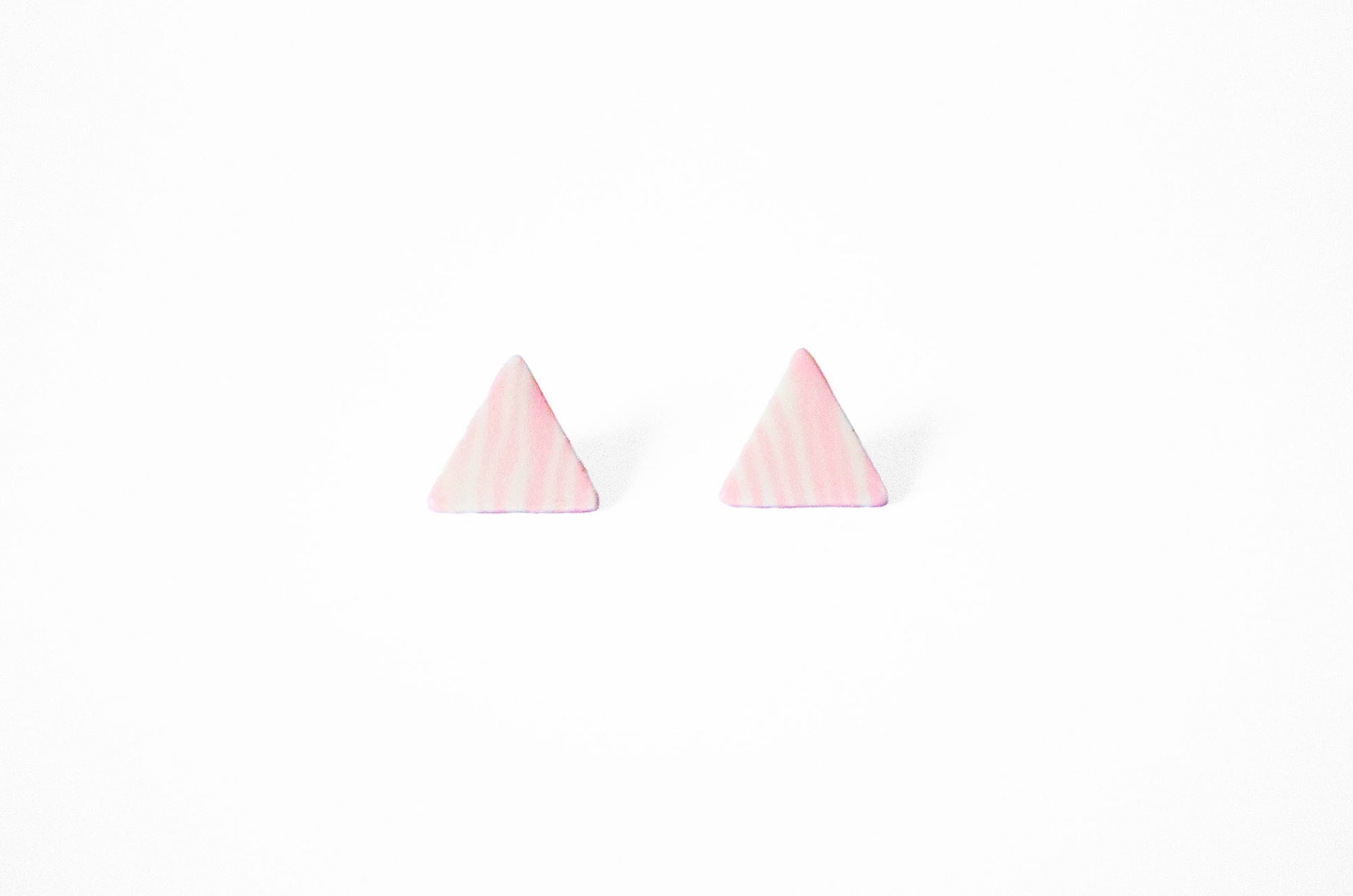 The random pink and white stripe pattern made with the Nerikomi technique gives them a lovely impression like strawberry milk smoothie, but the triangle shape's contemporary and simple design makes these earrings not too childish, making them mature.
