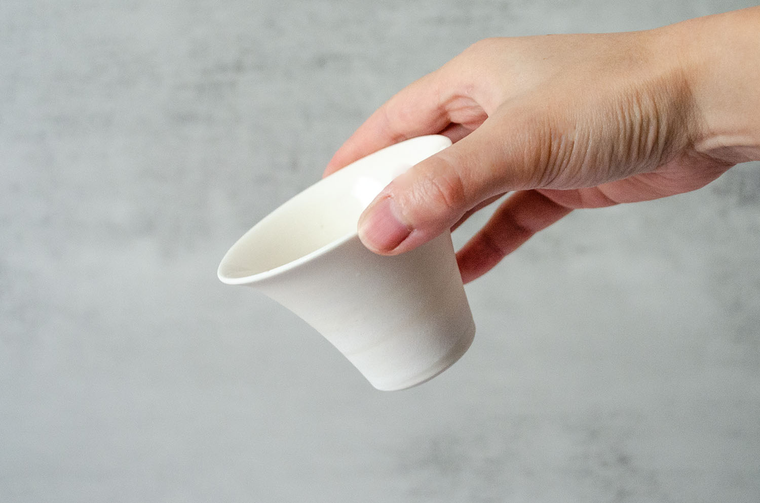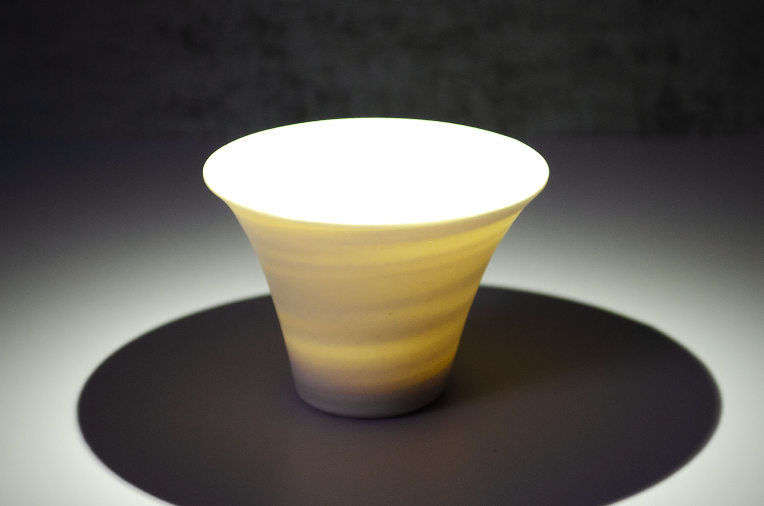 The cup is thinly made, and the two different transparencies of the porcelain swirls created by the Neriage technique are very beautiful through the light.
